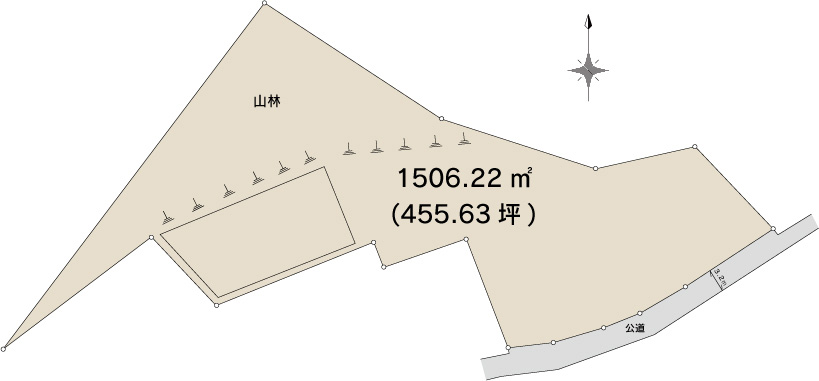 | 土地面積 | 公簿1506.22㎡(455.63坪) | 地 目 | 宅地・山林 |