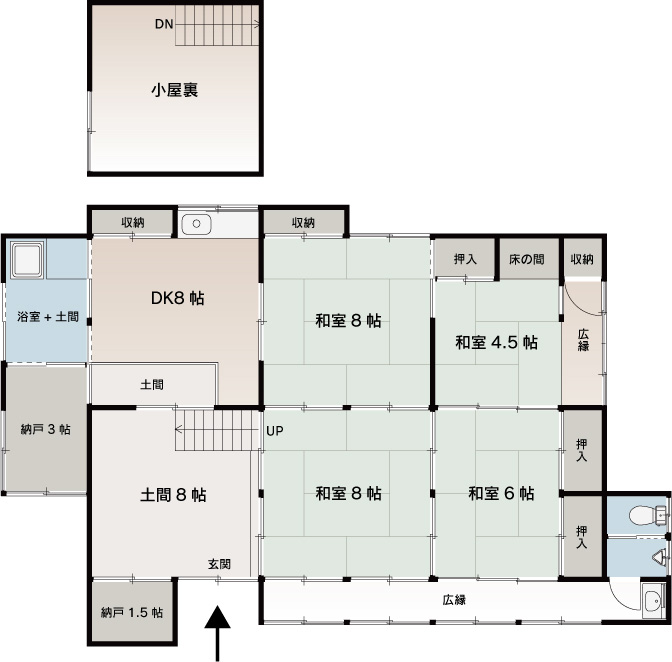 | 築年月 | 貸家:1965年10月 古民家:不明 | 構 造 | 貸家:木造2階建て 古民家平屋小屋裏 |