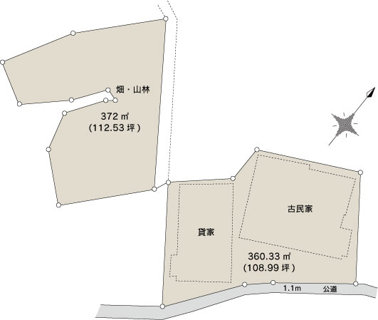 | 接道状況 | 南東側 1.1m 公道 接面24.0m | 現 況 | 貸家居住中 古民家空家 |